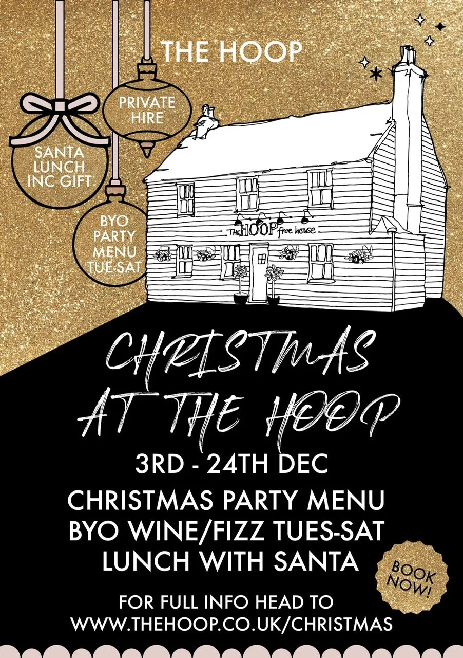 December is a busy time of year for Santa in his North Pole workshop. However, he still manages to set aside some time to visit his favourite pub on a few dates during the month to spread some Christmas cheer to our younger diners! He will be with us at lunchtimes on Saturday 6th , Saturday 13th, Saturday 20th & Chrsitmas Eve 24th. With a gift for each child and a chance for him to check their wish list, these are popular family lunches at The Hoop every Christmas! Bookings only available in our upstairs restaurant ( This does not apply to the 24th when tables will be available in the bar area too).